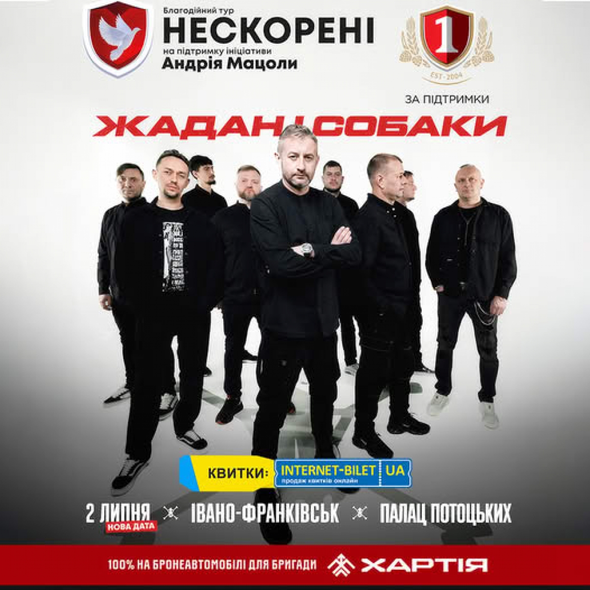 Благодійний тур «Нескорені» Запрошуємо 2 липня 2025, 18:30, у середу на Жадан і Собаки.